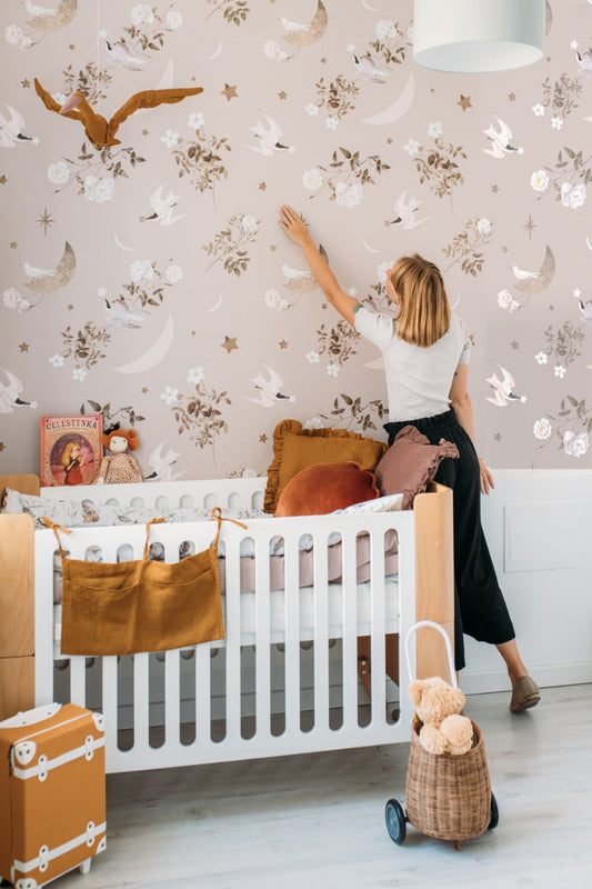 BIRDS WHITE GRAY Wallpaper 50x280CM