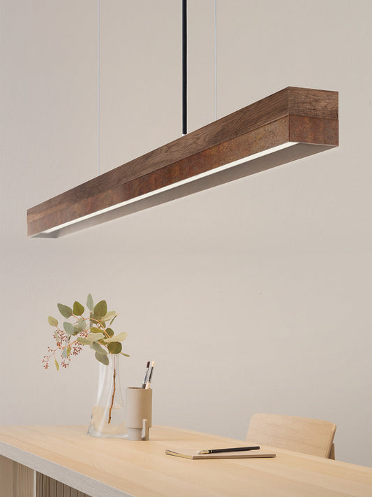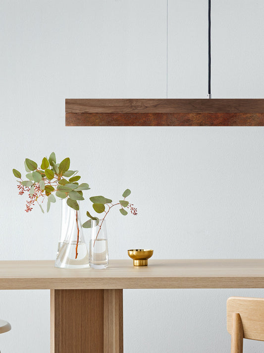 [C1w] Walnut Wood & Rust Corten Steel Pendant 122CM