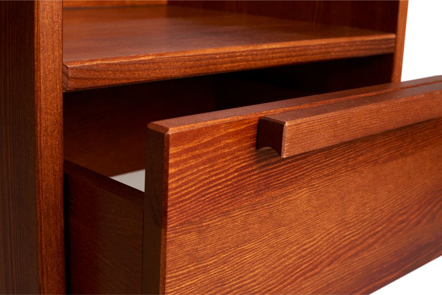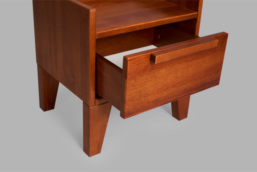 - Made of solid pine combined with the so-called "micro trailers", the bedside cabinet is smooth, without knots or wood blemishes.