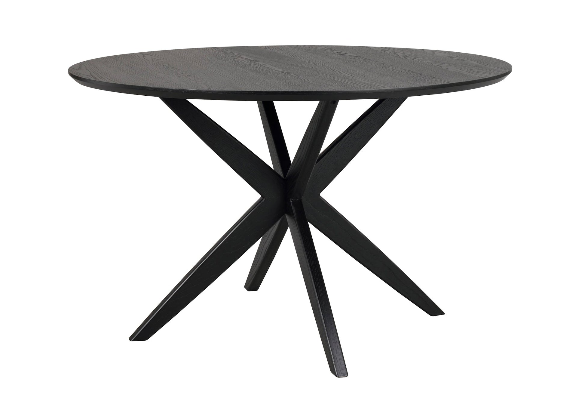 Calverton dining table Ø120 cm with its unique table legs in solid oak has a high design value. The black lacquered dining table is modern and fits nicely with both wooden and upholstered chairs that are easily placed around the table. The veneered brushed tabletop emphasizes the feeling of wood and fits perfectly in most homes.