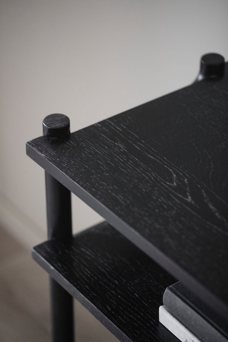 The shelf also works as a practical room divider and is also available in a lower variant.