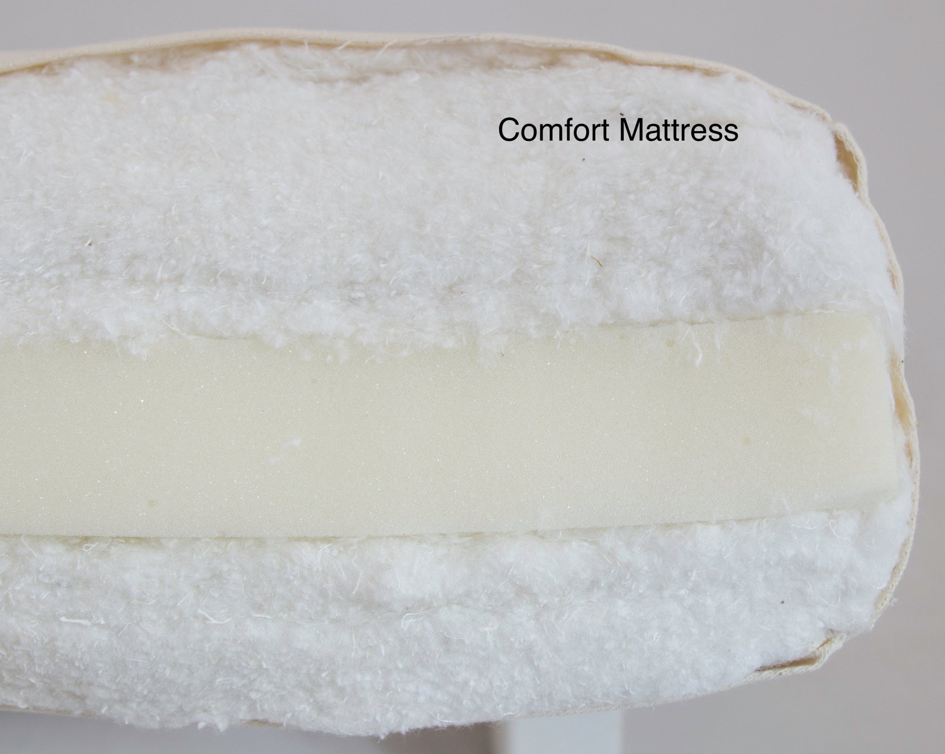 - Comfort: the futon is a 15 cm thick cotton bed mattress with a PU foam core. By applying 5-10% polyester to our cotton, we ensure the higher density and thickness of our futons compared to traditional Japanese futon bedding. However, it still inherits all the good qualities of a traditional Japanese futon. The Comfort futon will give you medium-firm sleeping comfort. The cotton in the futon will adjust itself to your body contours and support it, and the foam core will isolate slight movements.