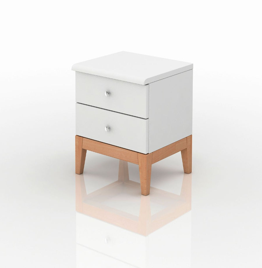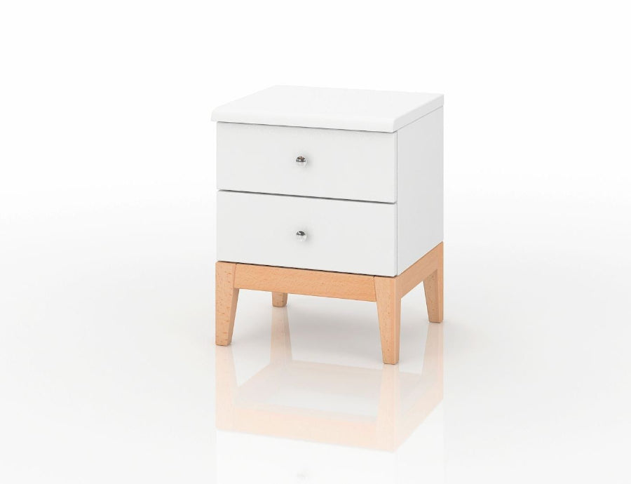 LIVIA 2S nightstand is a great addition to every room. A simple but stylish nightstand with two practical drawers mounted on legs. The base of the table is made of high-quality solid beech wood in natural color. The body is made of pine wood covered with paint. Sophisticated details determine the modern look of the cabinet. Livia will certainly bring a cozy atmosphere to the bedroom.