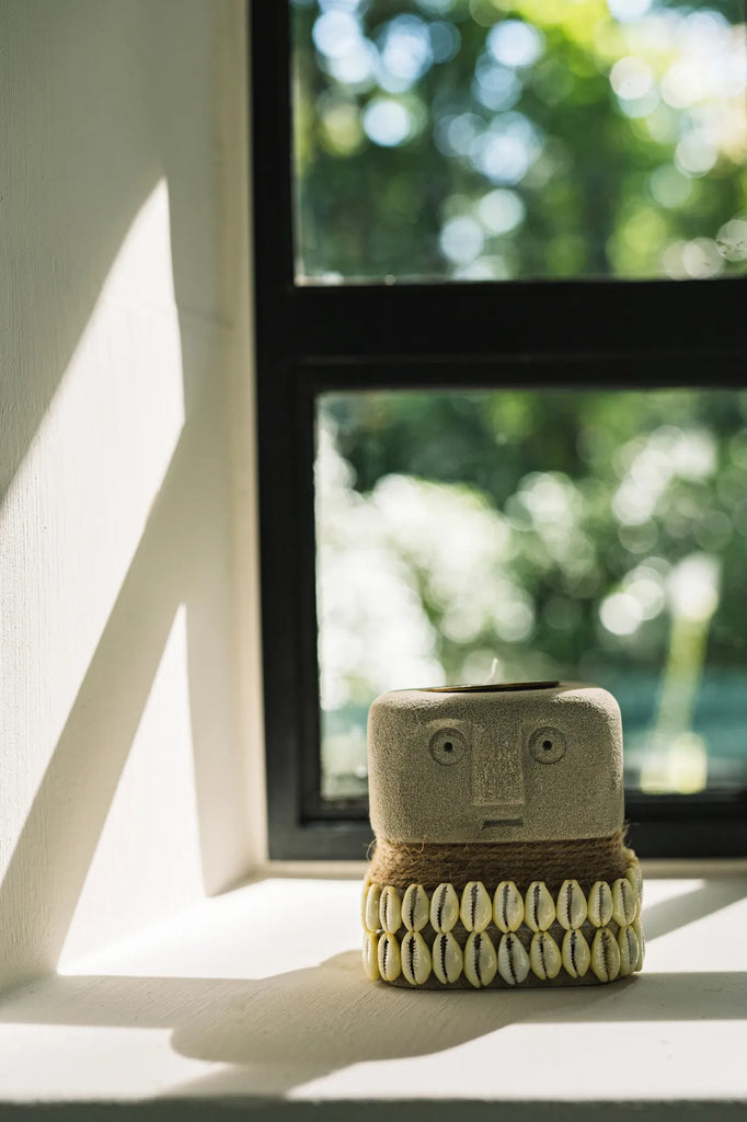 In the traditional villages of Sumba, statues like these are placed inside and around the entrance of the hut providing protection and healing to the occupants inside. They make a beautiful statement by themselves or look great in a cluster to create real impact. Pretty coastal these tealight holders are from the Island of Sumba Indonesia and are hand carved from sandstone by local artisans.