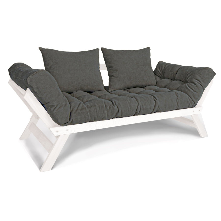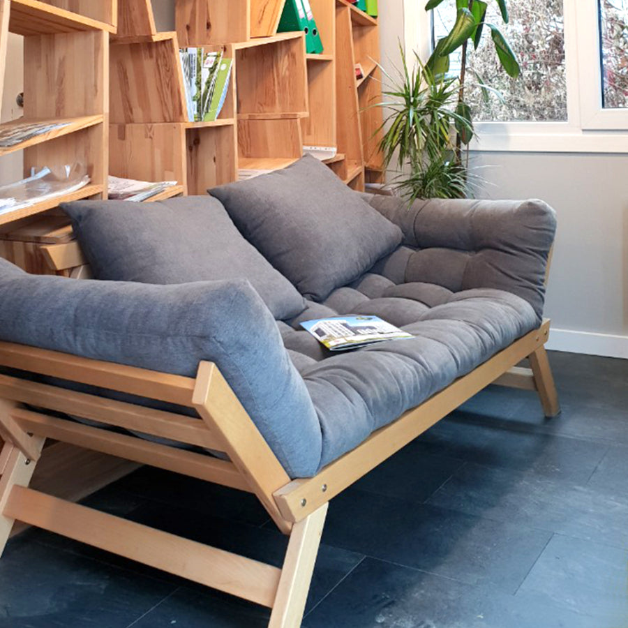 Canapea multifuncțională elegantă care se poate transforma într-un pat de o persoană pentru oaspeții peste noapte.