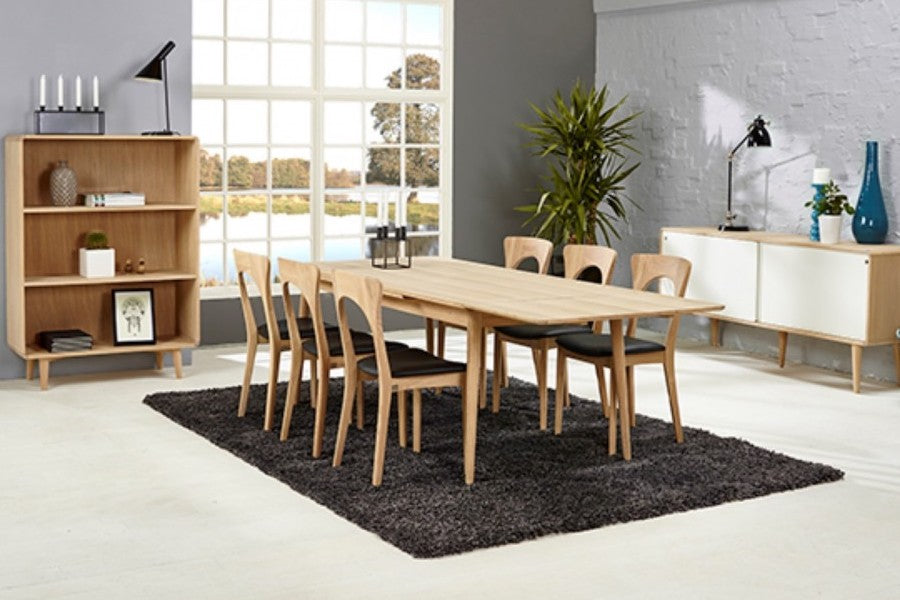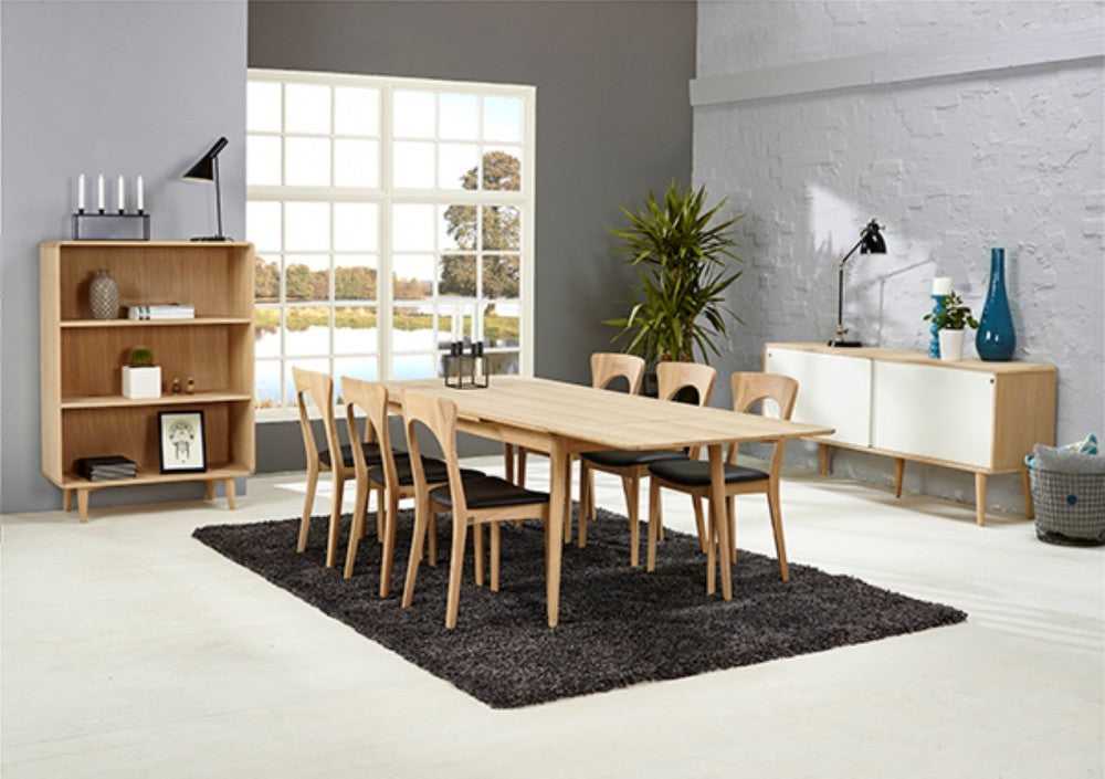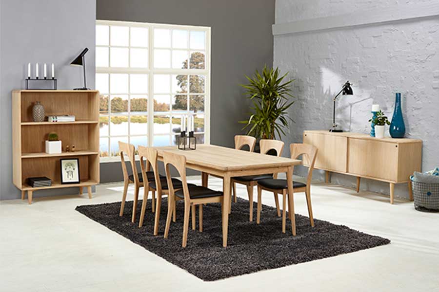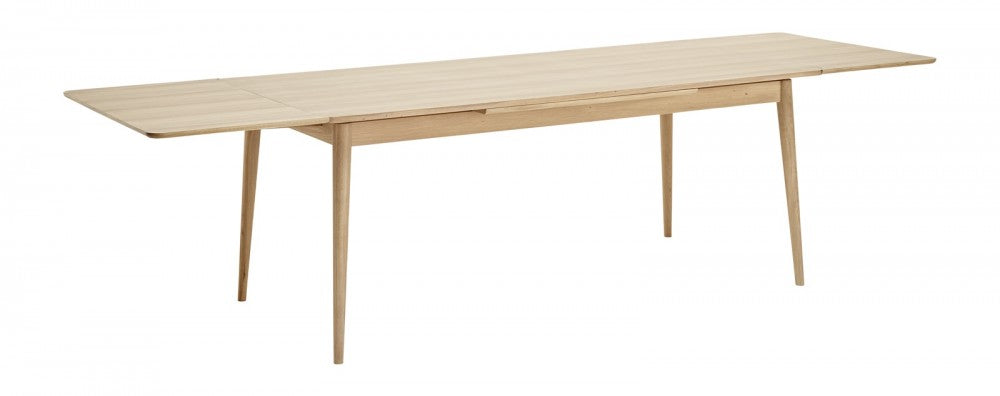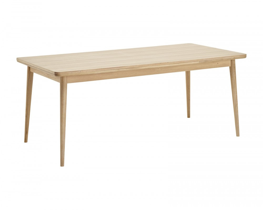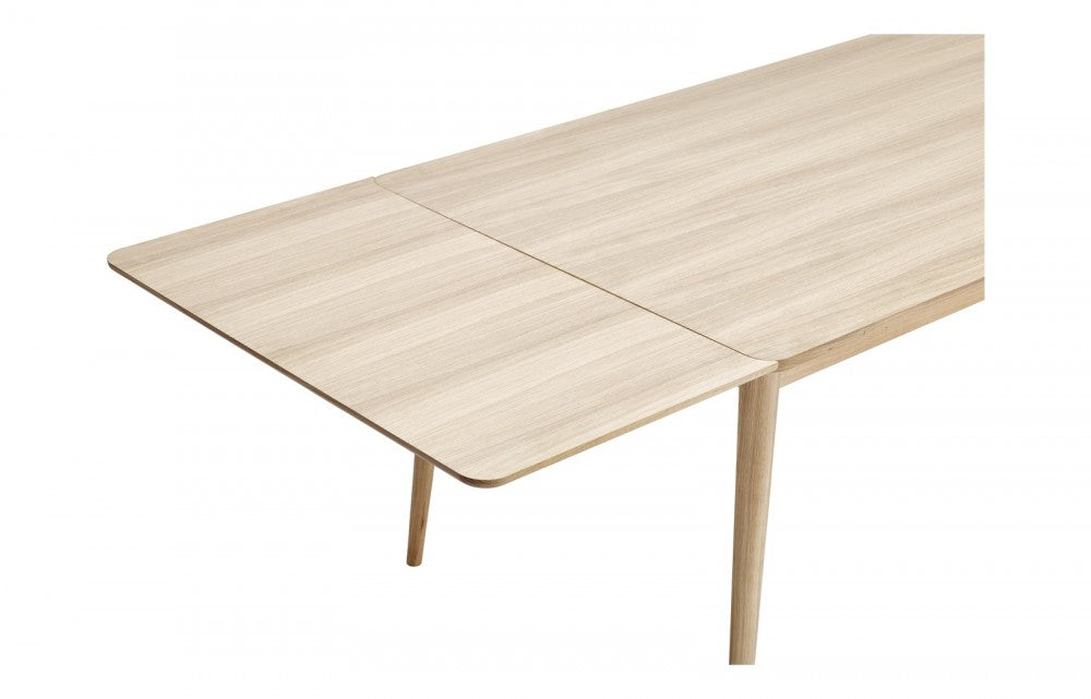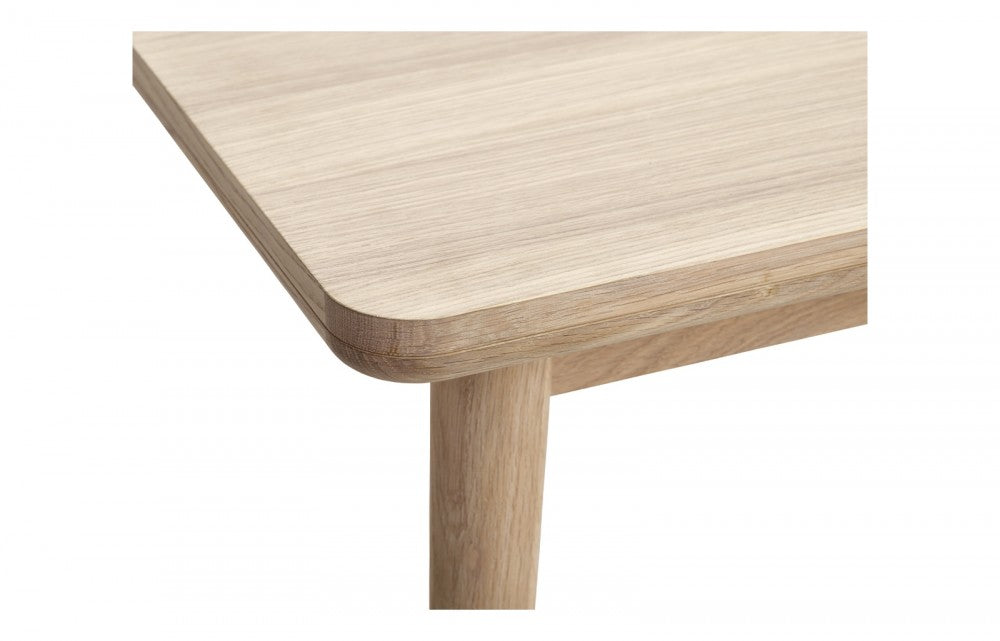 Masa este realizata din stejar masiv tratat cu ulei alb si din furnir de stejar, ceea ce o face usoara si primitoare la privit.