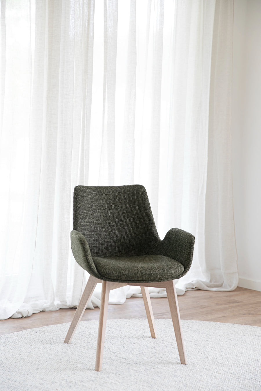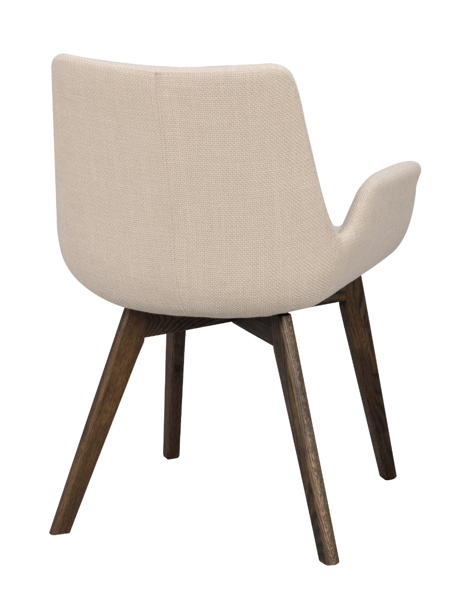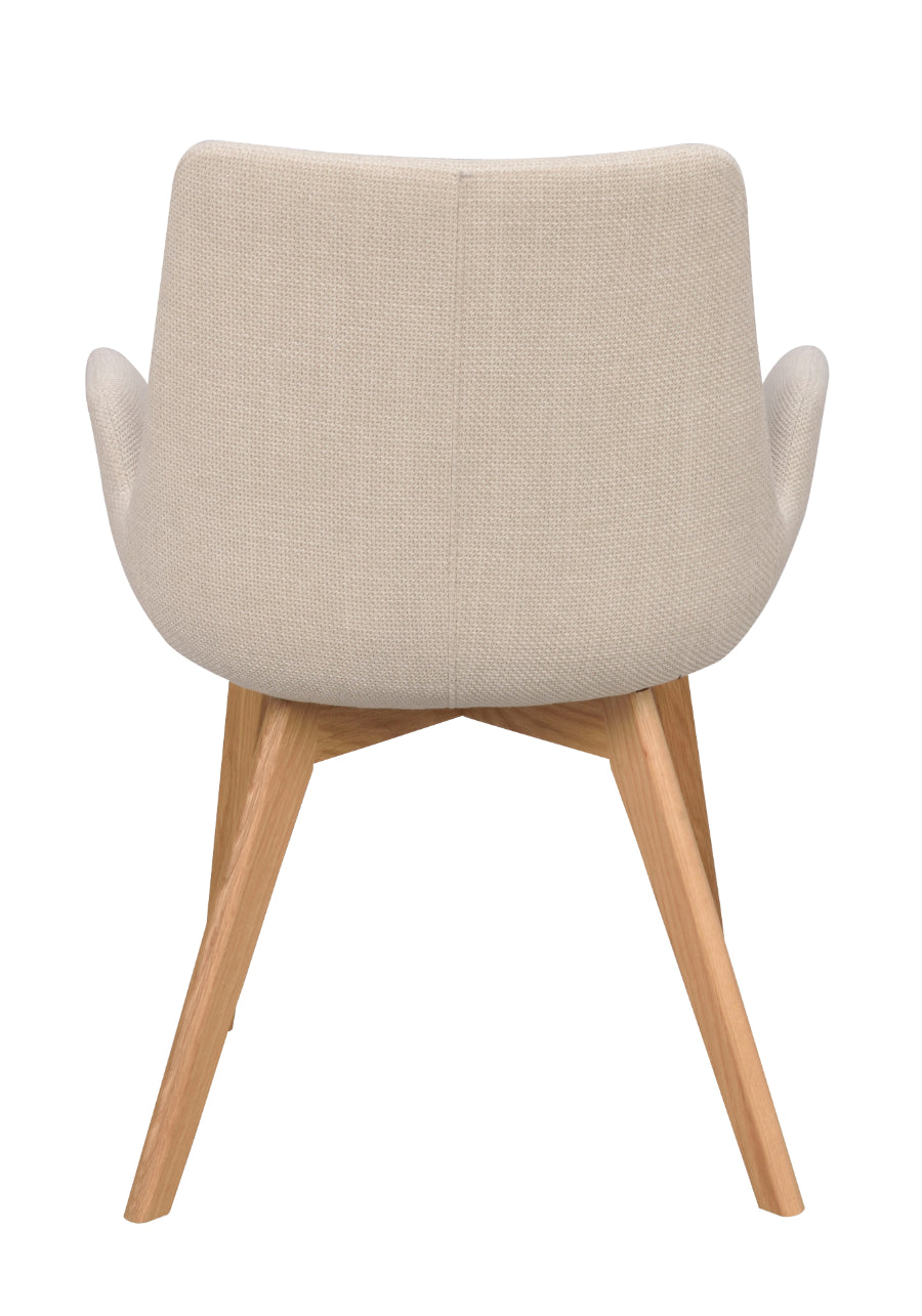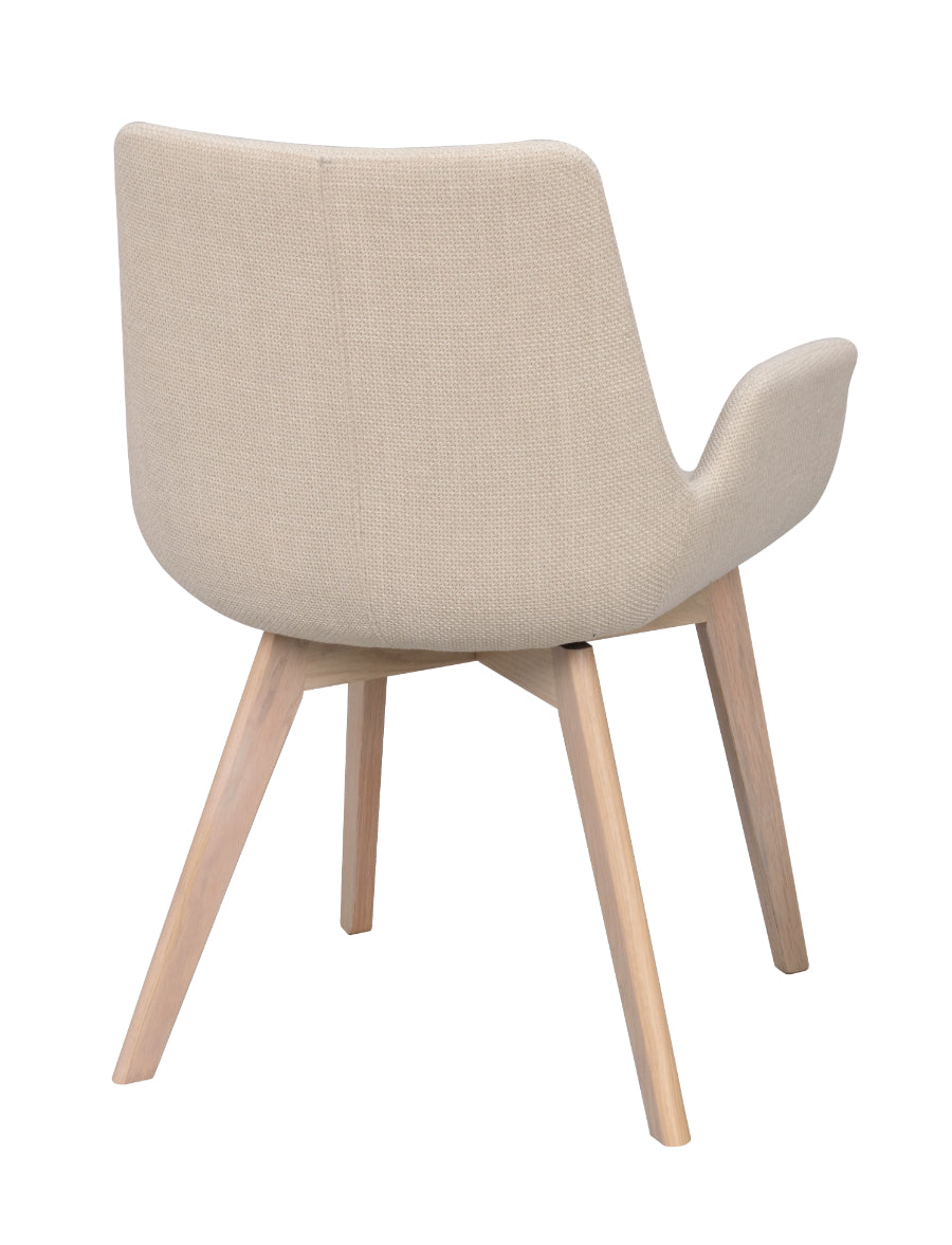 Cu design scandinav, calitate înaltă și lemn certificat FSC, Drimsdale devine un scaun durabil în timp. Disponibil în trei țesături și patru culori de picioare din lemn masiv.