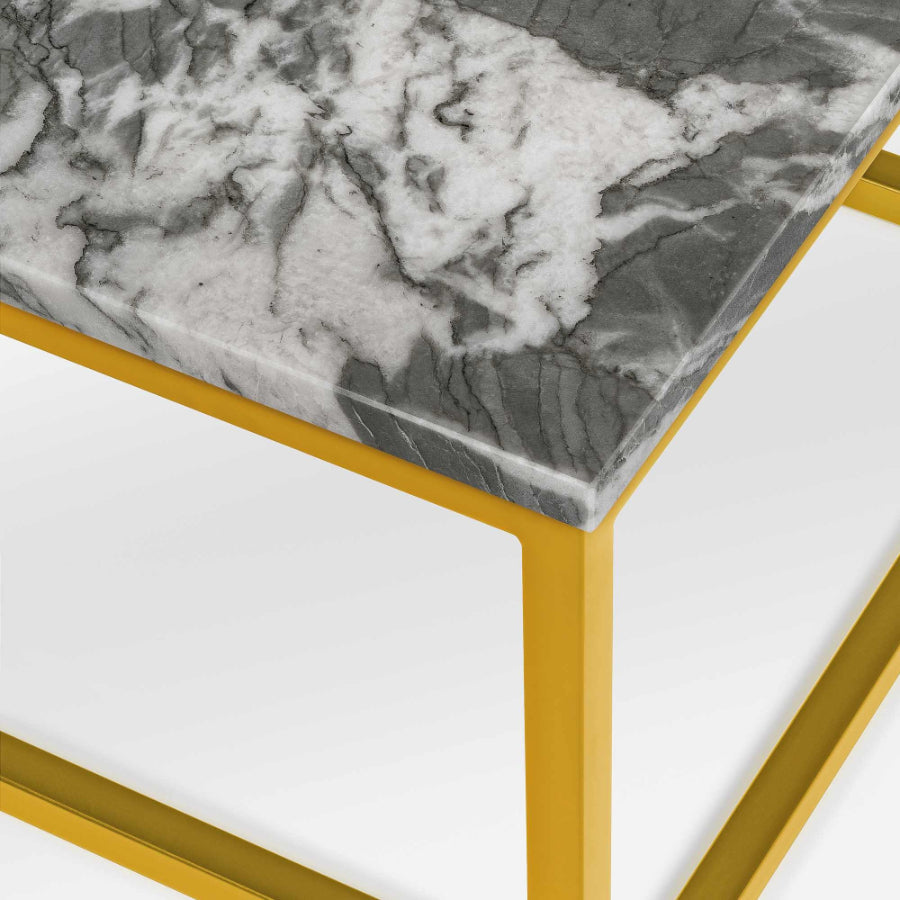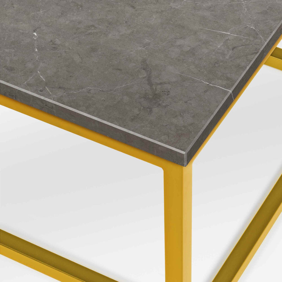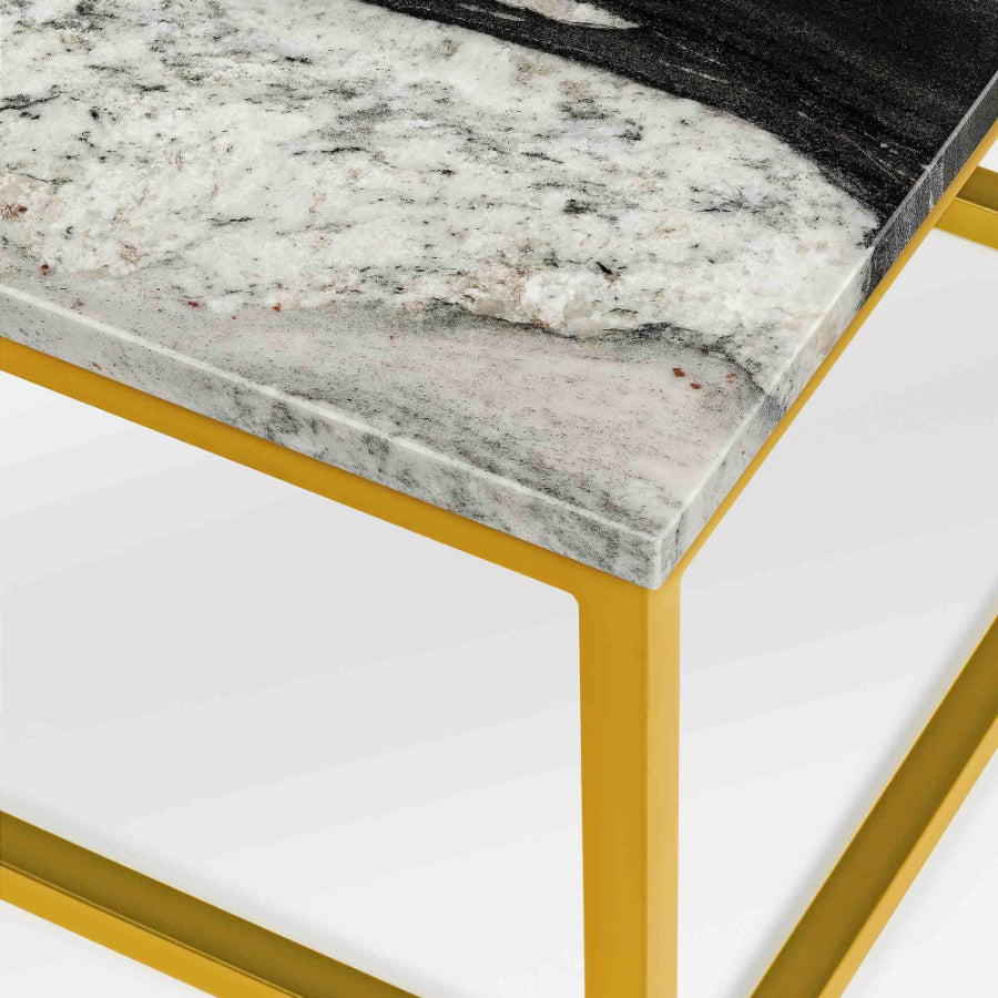 Această măsuță de cafea elegantă și solidă impresionează prin interacțiunea dintre blatul extravagant din piatră naturală și cadrul minimalist. Designul atemporal amintește de orașul suedez Göteborg și de nenumăratele sale canale în stilul tipic olandez.