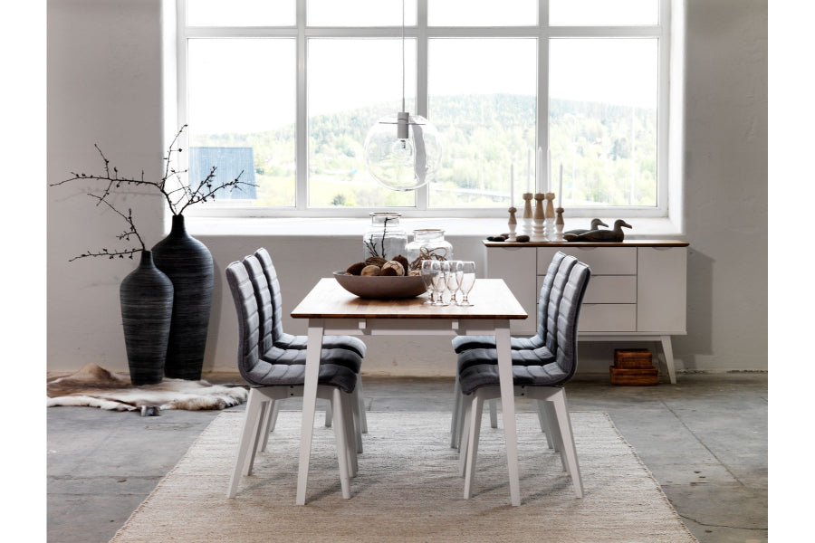 Scaun compact, în stil contemporan, care va fi un însoțitor potrivit pentru multe stiluri diferite de mese.