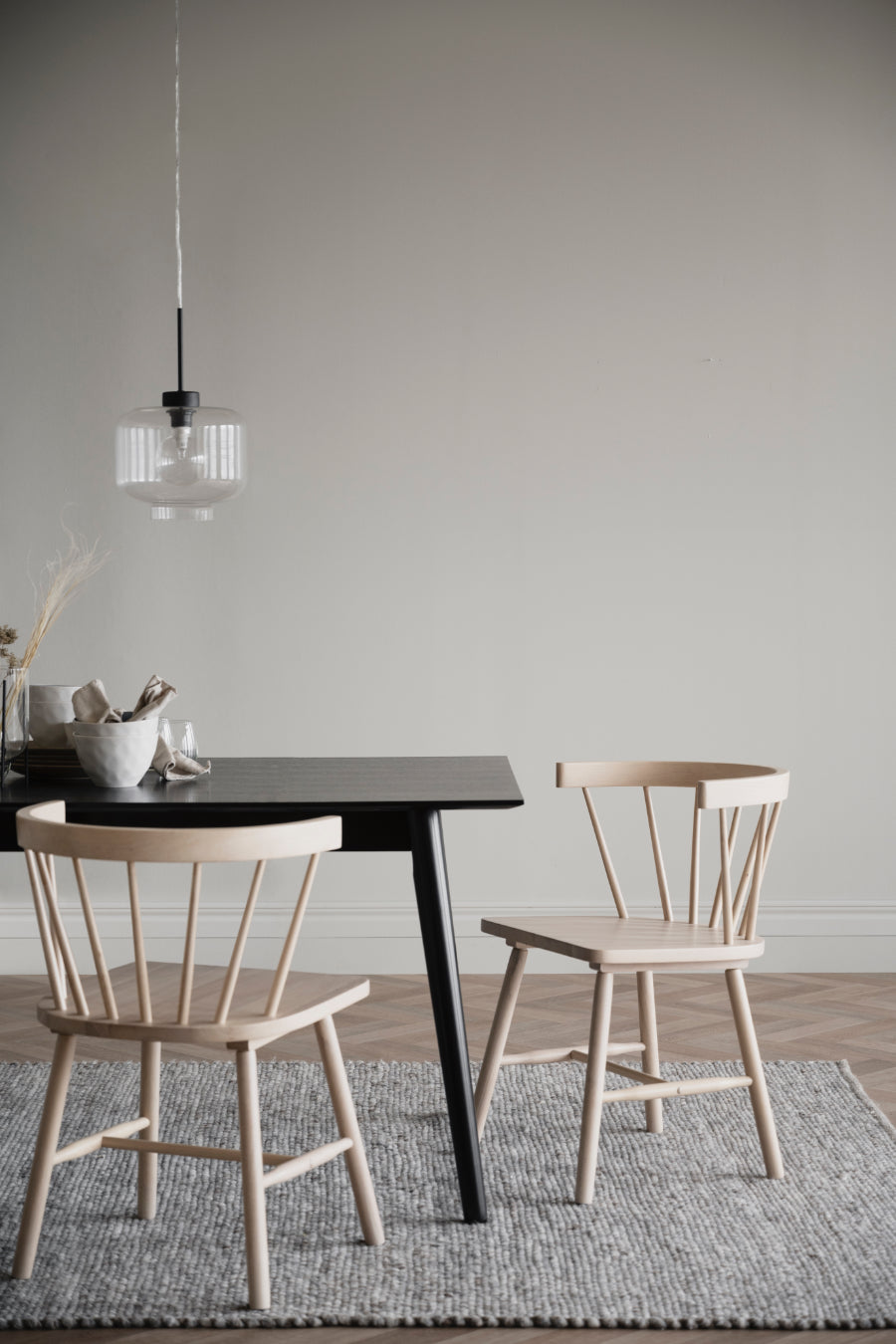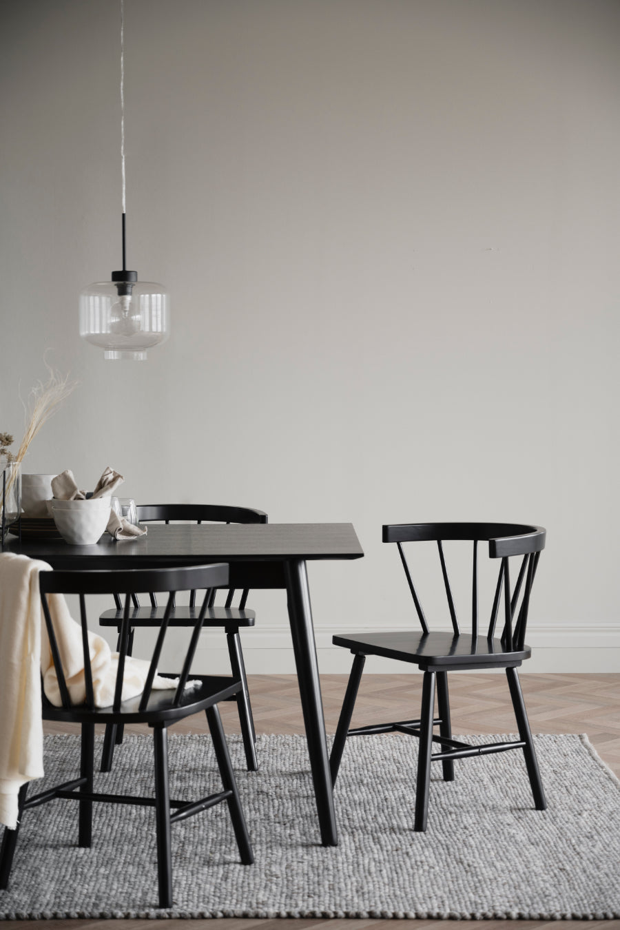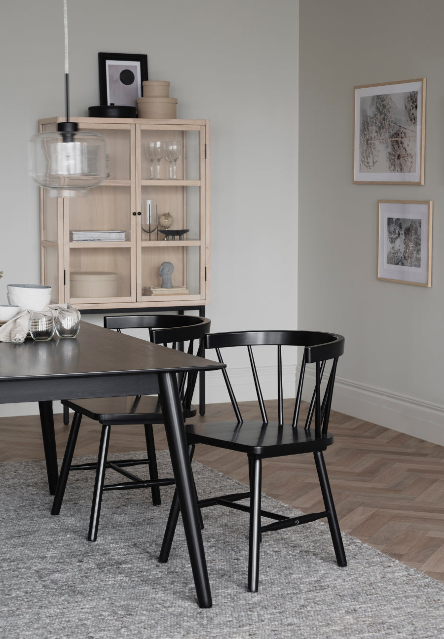 Masa Lotta 140x90 cm intr-un design scandinav elegant. Masa are o suprafață de masă din lemn lăcuit negru care este ușor de șters.