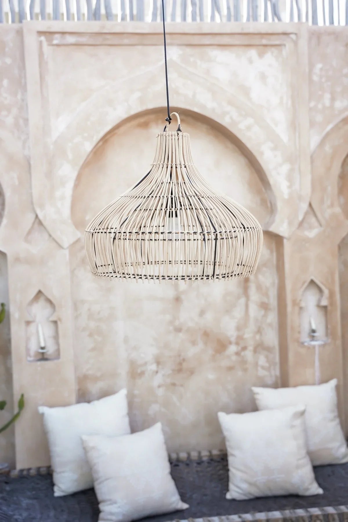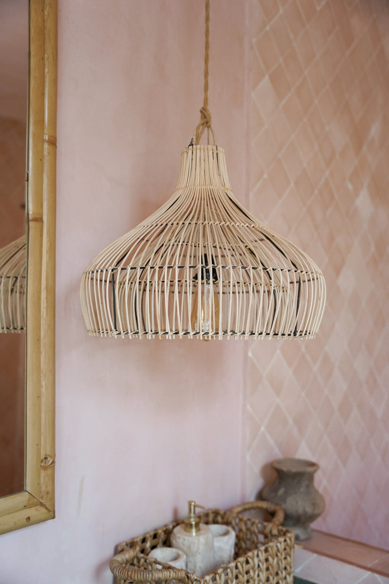 Pandantivul Pantai este un abajur cu design unic. Designul dublu din ratan al abajurului face ca lumina să danseze în cameră. Dimensiunea abajurului îl face, de asemenea, perfect pentru mai multe locații din interiorul tău. De la bucătărie până la creșă. Ne place foarte mult acest design și fiecare abajur realizat manual merită un loc în centrul atenției. Ai deja un loc în minte pentru a agăța aceste frumuseți?